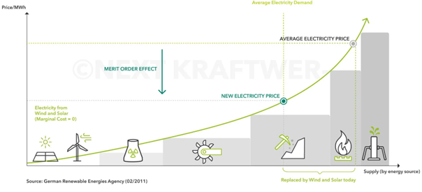 Figure 2: The Merit Order Effect (German Renewable Energies Agency) [1]